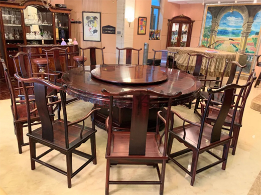 客户家居图:大红酸枝2.38米圆餐桌13件套