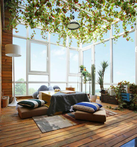 阳光房一般从露台或阳台变化而来,也有洋房、别墅在院子里加盖的,空间可以不必太大,配上大大的玻璃窗,光线非常好,种点花草,摆上自己喜欢的装饰物,仙气飘飘,绝对是家里最受欢迎的区域。