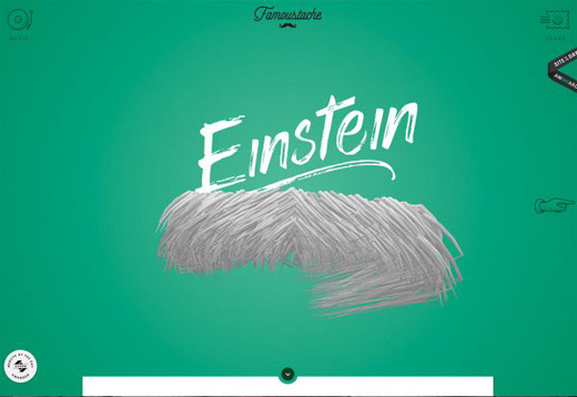 当然,将日常生活中的小尺寸的元素放大到整个屏幕,视觉平衡是需要仔细控制的。它们通常需要足够的空间和留白,来确保它们看起来不是那么奇怪,或者过于刺激。Westward Leaning 这个网站在眼镜元素的周围采用了大量的留白来平衡视觉,Famoustache 这个网站则采用了明亮的色彩和有趣的排版来平衡浮动的胡子,而DTSi 这个网站则用大量的半透明的几何元素来软化背景的眼睛。