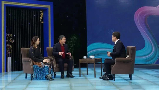 嘉宝莉集团创始人仇启明(中)、董事长仇东平(左)做客央视《逐梦年代》栏目