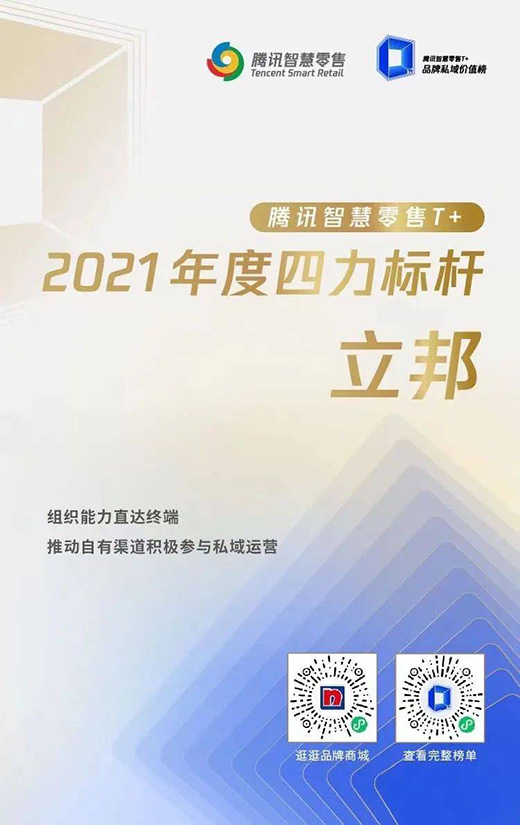 近日, 在经济观察报和大中华区艾菲的支持下,腾讯智慧零售首次重磅发布“2021腾讯智慧零售T+品牌私域价值榜”。在这份业内首个综合衡量品牌私域经营状况的年度价值榜单中,立邦凭借在私域经营“组织力”方面的突出表现,成为唯一上榜的涂料品牌,与海蓝之谜、科颜氏、优衣库等20个知名品牌一同摘得“2021年度四力标杆”称号,在私域运营和新零售领域,树立了新的行业标杆。