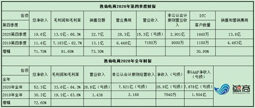 亏损以外被忽视的是,2020年第四季度和全年的增长数据。逸仙电商全年的总净收入增长到52.3亿元,同比增长了72.6%,第四季度贡献了19.6亿元。
