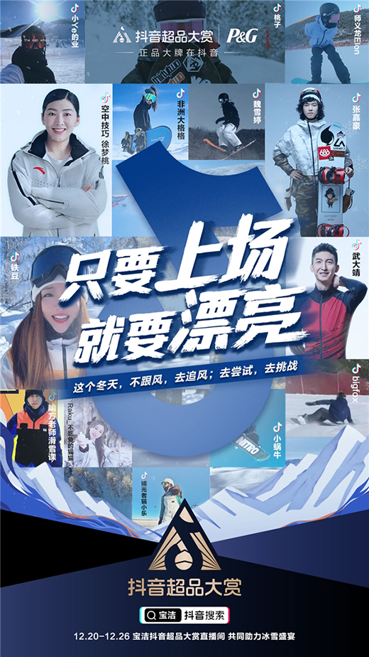 抖音超品大赏与宝洁携手,将人们因冬奥将至而不断升温的冰雪运动热情与宝洁产品利益点相结合,打造“漂亮冰雪短片”,发起抖音站内趣味玩法,为的是鼓励普通人不畏困难,全身心享受冰雪运动。项目延续品牌“只要上场,就要漂亮”营销主题,邀请8位奥运健儿及明星共同发声,助力每个漂亮瞬间。更重要的是,此次合作打破了奥运营销的常规视角,利用抖音站内丰富的达人资源,将抖音滑雪爱好者纯粹的快乐,传播至全网。