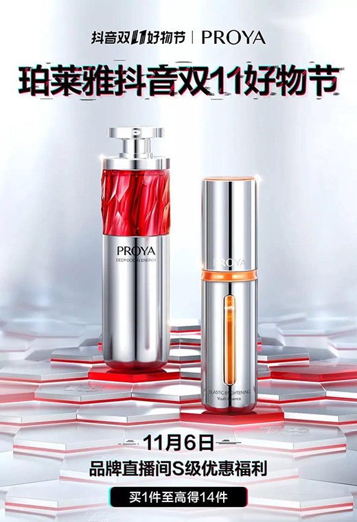 据品牌方透露,今年抖音“双11”,珀莱雅将继续在抖音发力——11月6日,珀莱雅抖音双11王牌直播间开启,将从当天早上6点连续直播至晚上12点,附加超强S级货品力度(高至拍一件享十四件)。