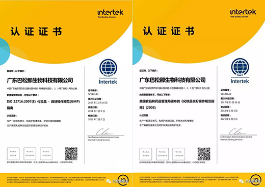 2019年1月,德谷凭借着国际高标准的生产资质和研发实力,通过了国际第三方测试和认证公司Intertek的严格检测和审核,并一次性获得美国FDA的GMPc认证及欧盟ISO22716质量体系两项国际权威认证。这意味着德谷生产的产品质量体系达到了国际化标准,同时也意味着德谷有实力确保所有产品在安全无污染的环境下生产,保证了产品的高品质高质量。