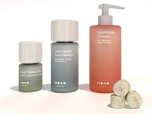 比如总部位于香港的新锐护肤品牌MONO Skincare,推出了全球首款可以溶解在水中的“护肤片剂”,即无水配方护肤品,消费者通过购买一次可反复使用的瓶子,后续复购护肤品就无需再买包装瓶了,这对减少塑料污染起到很大帮助。