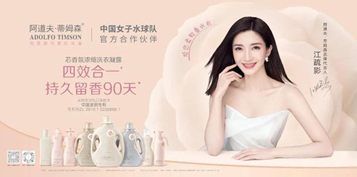 阿道夫·蒂姆森品牌,以香氛为主打理念,率先在中国本土家清市场推出香氛洗衣凝露,邀请了12位国际调香大师参与香味调制,带来12款经典的“爱的味道”。结合独创“芯香氛锁香爆香黑科技”,可实现衣服持久留香90天。