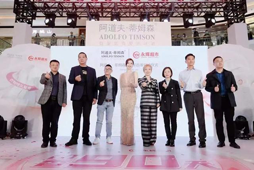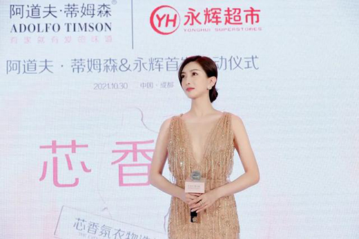 △阿道夫总裁李志珍、阿道夫·蒂姆森品牌代言人江疏影、总经理刘洪、副总经理吴瑞旺、四川永辉食品用品采购总监姜远方、永辉清洁用品高级经理姜静等嘉宾及经销商代表,共同启动了阿道夫·蒂姆森芯香氛洗衣凝露新品首发仪式。