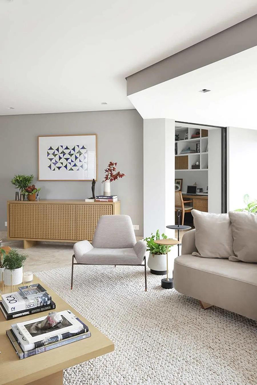 另一头连着的,是和客厅到打通的阳台,并且阳台的一侧又连着家里的共享书房,所以整个空间的互动非常强。