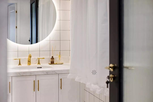 浴霸顶灯会照的满脸阴影、镜子里面目模糊,加个镜前灯,最好环绕/在两侧给光。