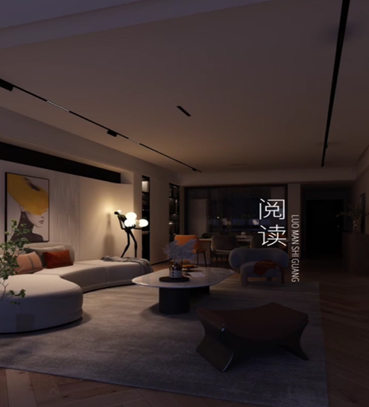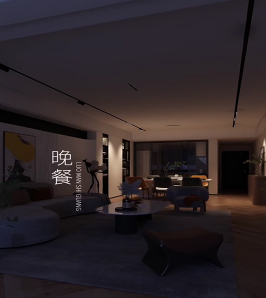 客厅可以设置回家模式、会客模式以及我们其他的就是根据我们主人喜好的一些模式,你比如说是我现在设定的是我们的一些这个会客模式,那么在会客模式下的话,我所有的灯光达到4000k 的这样一个色温,保证我们整体的空间的照度及均匀度。同时的话我们会把重点的这个沙发茶几的这些区域会重点来打亮,所以说这一块的也是保证整体在这个范围内,然后交流的时候能够更高效更集中。