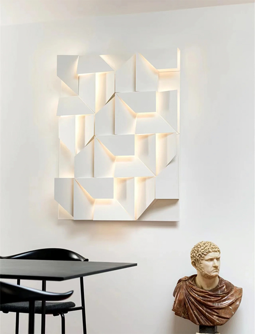 ▲NEMO家的这款壁灯,太像一件雕塑艺术品,兼具照明的美感和搭配的艺术性,棱角分明的切割线条透过白色光线,给人折纸的错觉。