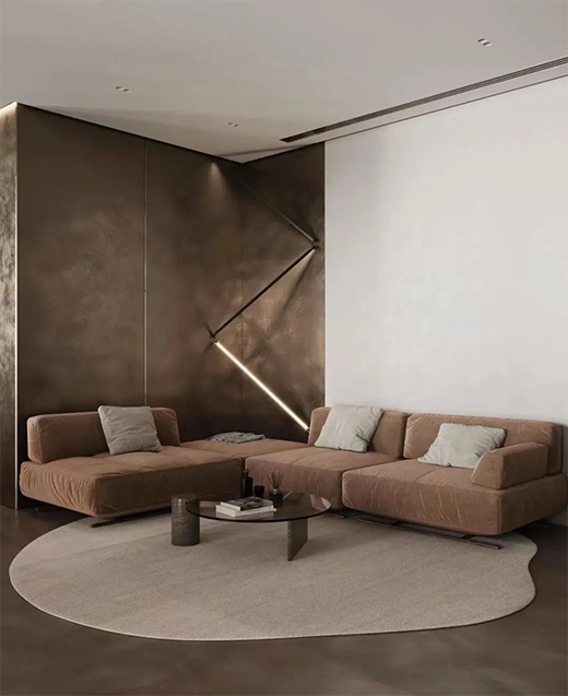 这是一处位于孟买的高级公寓,以棕色、木色为主色调的现代极简风清新雅致。