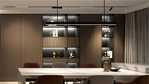 尤其是在灯具的选择上,相比传统灯具,磁吸轨道灯的光源模块有很多选择,像可调角线性射灯、线性泛光灯等。
