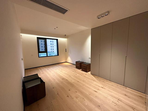 这是次卧,也是非常简单,除了把中央空调包住之外,其他多没有安装吊顶。选择木地板的话,更显得温馨,没有瓷砖那种冷冰冰的感觉,很舒服。窗户不大,但是采光也很好呀!