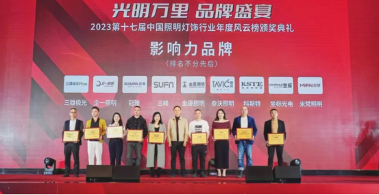 泰沃照明荣获中国照明灯饰行业2023年度影响力品牌、爱心企业