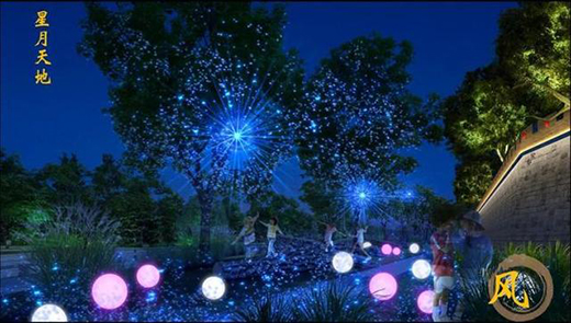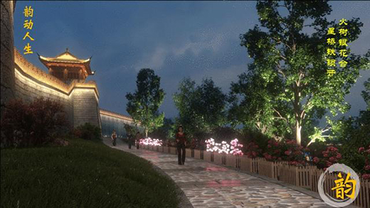 工程秉承“古韵田园,产城融合”的理念,以城墙、城门、城河为主线,结合人文民俗、历史文化等特色,坚持动静结合,规划为“史、风、雅、韵、颂”五大区块,布局“金戈征程”“古城记忆”“星月天地”“火树‘萤’光”“光绘八景”“文昌雅叙”“会文赋诗”“名人荟萃”“韵动人生”“元始盛宴”“音乐摇篮”“古城新颂”十二处主题夜景,绽放出“光叙千年古镇,凝望新登古今”的光影美景,为周边的居民和游客唱一曲独属于新登古城的文化视觉新曲。