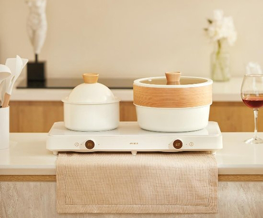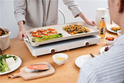 现在很多家庭喜欢开放式厨房,这款聚嗨炉左右分工、噪音小与油烟轻的特点,让它可以较多得应用在开放式厨房中,中岛台,餐桌上,甚至是户外露营都能出现它的身影,高颜值的外观也为家居风格增添了一抹清新的色彩。