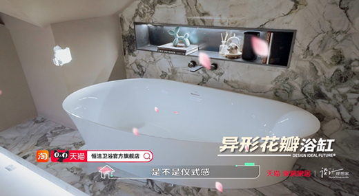 同时为满足心愿人能在浴室空间卸下一天疲惫的心愿,这次更是特意在卫浴间配上了嵌入台阶的异形花瓣浴缸。恒洁卫浴的品质产品与设计师奇妙创意的完美结合,不仅做到满足了当代人们在解决生活需求的基础上,更渴望追求舒适美观、凸显独特个性的深层需求。