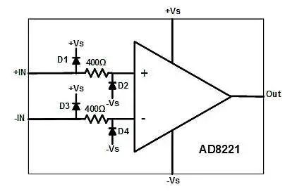 图 1:AD8221 的输入 ESD 拓扑