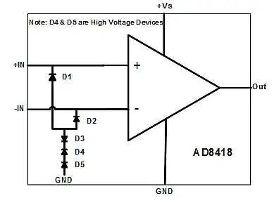 前端放大器中使用ESD二极管作为电压钳的设计