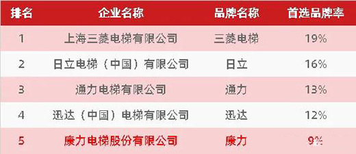 康力电梯连续5年跻身“全球电梯制造商10强”