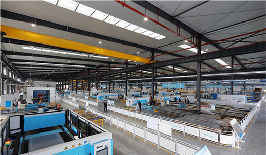 公司的六号生产厂房就是智能化生产线,占地面积17000平方米,采用国内先进的机器人设备,建成自动化生产流水线,使我们的品质达到国内一流水平。厂房分为厚薄板加工区、门板生产线、轿壁生产线、全自动喷粉线、覆膜和自动装箱生产线、工业展区六大部分。