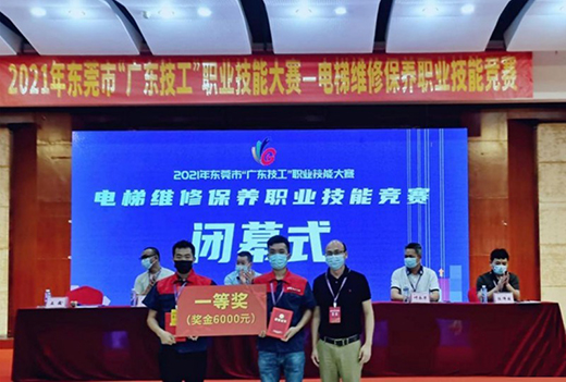 6月21日,由东莞市人力资源和社会保障局、东莞市市场监督管理局主办,东莞市特种设备行业协会、东莞市电子科技学校承办的东莞市“广东技工”职业技能大赛---电梯维修保养职业技能竞赛落下大幕。在闭幕上,东莞市电子科技学校的杨潮喜校长、叶永华副校长、电子部陈伟国部长及协办单位的相关负责人出席,并为获奖者颁奖。