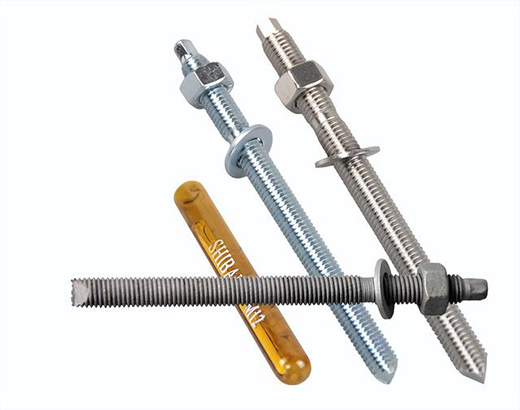 再说说特殊倒锥形化学锚栓,它与普通化学锚栓有着典型区别的特征是:螺杆呈一节节倒锥状或球状突起形状,优势在于能适用于开裂混凝土和非开裂混凝土。同时,与普通化学锚栓受力方式不同的是,它可以配合注射式植筋胶,利用承重结构提高锚固安全性这点就与其他普通化学锚栓不太一样。一方面它是通过化学胶粘剂保证锚栓与混凝土的粘结强度,另一方面又通过化学胶粘剂与倒锥形螺杆之间的滑移形成类似于机械锚栓的锁键力,是一种具备较好抗震性能的化学锚栓。