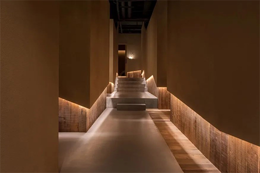 常见的灯带位于楼梯台阶、墙壁、横梁等处,可以削弱空间的体量感。