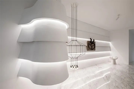 在空间设计中,很多设计师会引入“灯带”的概念来点亮空间,既丰富了空间脉络,又营造了明暗层次与现实的对比视觉感。