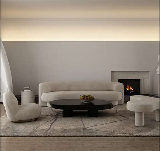 灯带本身具有线条感,可以通过隐藏式设计,沿着空间轮廓营造出独特的造型,丰富空间光环境,同时增加空间立体感和层次感,营造氛围。