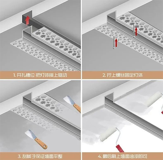 墙顶面线性灯安装流程: