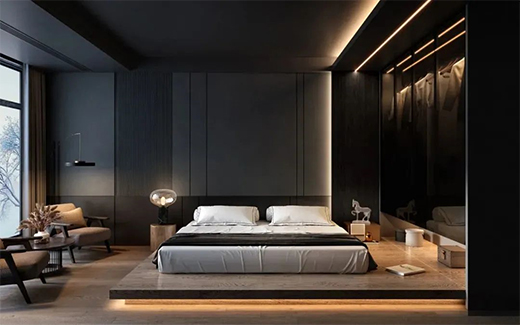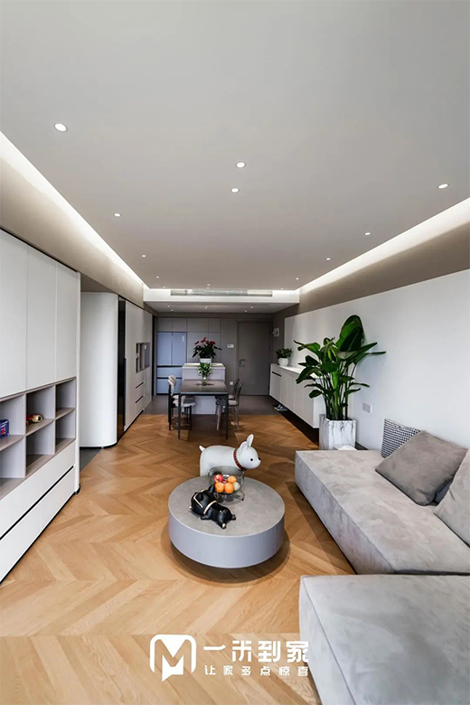 天花板的灯带设计在客厅或卧室应用广泛,它的光源能够营造更为柔和舒适、温馨明亮的居住环境。