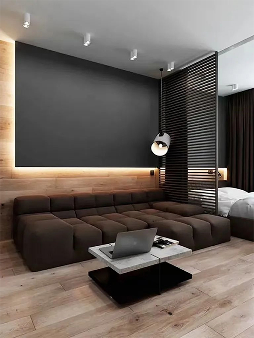 墙面灯带设计适合没有做吊顶的住宅,在客厅、卧室的背景墙,楼梯、过道的侧面墙,采用灯带的设计,也能够为空间区域增添几分优雅和内敛。