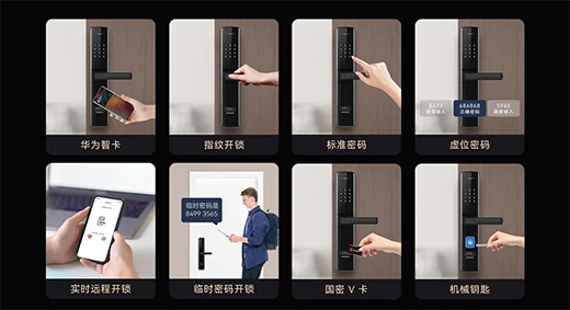 青稞智能锁G5R拥有8种开锁方式,满足用户日常各类开锁需求,其华为智卡功能还能实现华为手机“熄屏开锁”。