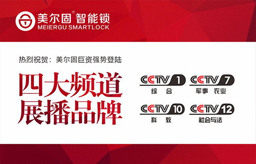美尔固指纹锁,实力整合CCTV-1、CCTV-7、CCTV-10、CCTV-12四大央视频道,霸屏央视!向神州大地传播美尔固之品牌魅力,向世界宣告美尔固树“中华民族强企”之信心!