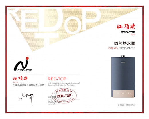 12月13日,由中国家用电器协会指导、红顶奖组委会主办的“第10届中国高端家电趋势发布暨红顶奖颁奖盛典”在京举行。COLMO JSQ30-CE616凭借其优秀的外观设计搭配高端的功能,在众多产品中斩获红顶奖热水器大奖殊荣。