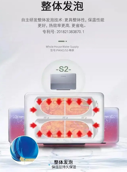 除了洗澡,我们早上洗脸,偶尔用热水洗手,只需要一盆热水就够了,但是如果使用储水式热水器,就必须把满桶水都加热才能用,又会出现前面说的预热和保温的浪费,而皮阿诺S2速热式热水器,使用多少加热多少,能实现全屋用水量。