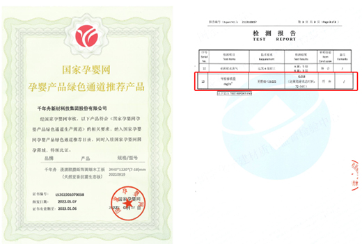 千年舟锌效抗菌天然豆香生态板精选优质原木为原料,采用植物蛋白胶大豆胶代替传统脲醛树脂胶,成品板材经权威第三方机构进行样板检测,在72小时稳定状态下游离甲醛释放量不超过0.025mg/m³,环保标准达到国家标准ENF级,适用于多种空间,老人、小孩皆可放心应用。