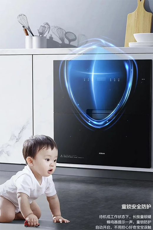 除了上述优质的存储、消毒性能之外,老板消毒柜XB710A还拥有多重体贴入微的人性化设计:安全童锁功能,防止中途误触以及宝宝好奇误触;触控面板,易操作易擦洗,便捷省心;隐藏式把手符合人体工学设计;不锈钢搁架、不锈钢门板经久耐用······