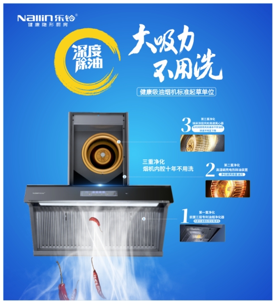 2023年,乐铃凭借着在厨房电器领域内吸油烟机和集成灶对厨房油烟难关的攻克,参与《健康吸油烟机》、《健康集成灶》等团体标准的制定,推动行业的健康升级,守护亿万家庭的呼吸健康。
