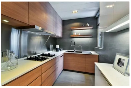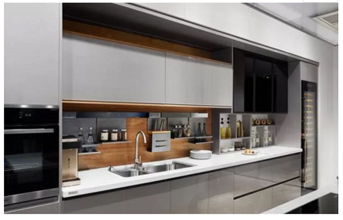 厨房除了橱柜以外,台面也是属于面积比较大的一块。一般来说颜色的选择要跟橱柜有一定的差异性,不能跟橱柜选一样的颜色。
