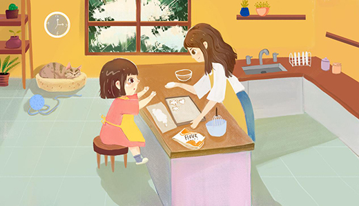 厨房,犹如屋里的活动场,数步之内的空间,不卧不坐,“动起来”才更有生活气息。“学会独立做饭炒菜”,是父母为你出的人生考题,但不必惊慌埋头苦学,父母总会陪伴孩子一起“解答疑难”。从“坐享其成”到“自给自足”,在热闹的沟通里,在忐忑的尝试中,在满足的作品前,父母和孩子的互动更为直接,相互为榜样和骄傲,相互为依赖和信任,这是人间最自然纯粹的“合作”。