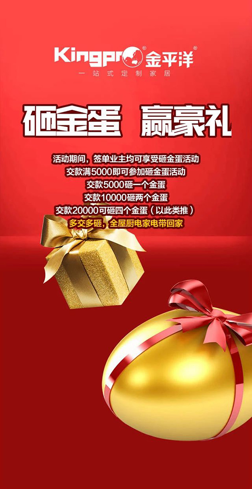 周年庆活动期间,交款满5000元即可参与砸金蛋活动。交款满5000砸金蛋一个;交款满10000砸金蛋两个;交款满20000砸金蛋四个(以此类推)。