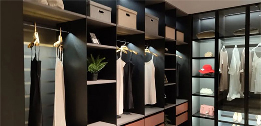 脱离繁复设计和物质堆砌,将有限空间变成精致不锈钢衣帽间,让一件件美衣都能舒服的躺在各自的区域,静静地等待着主人的宠幸。在暗色里增加玻璃材质和明亮暖色调的门板,给人温暖的感觉,打造别具一格的深邃感。