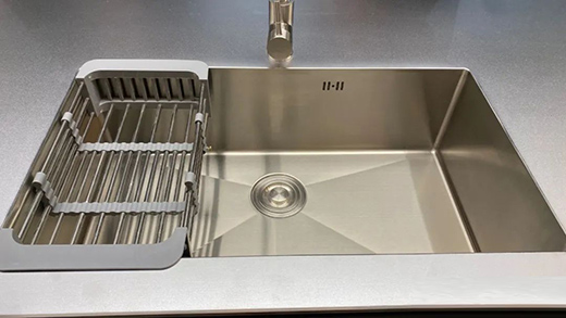 不锈钢厨柜采用一体式出产,像不锈钢台面与水槽以及不锈钢柜体板都是一体成型工艺制造而成,不易产生霉菌,更加干净卫生。
