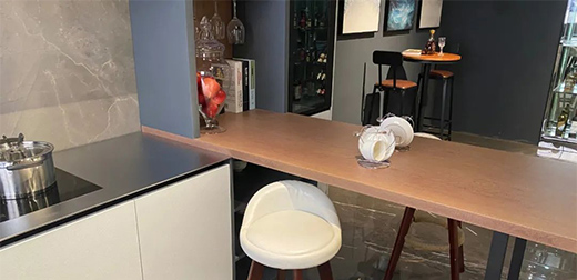 卡利亚采用热固微晶工艺技术,让不锈钢门板呈现不同的饰面效果,可根据不同场景需要,不同使用标准,不同风格变换,灵活定制符合需求的不锈钢厨柜。