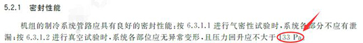 塬标准真空试验的抽真空压力为300Pa,回压为150Pa,新标准改为266Pa和133Pa;针对这一调整,科灵继续沿用了塬来工厂标准要求的抽真空压力为50Pa以下,回压不超过150Pa,此工艺要求远高于国标标准。