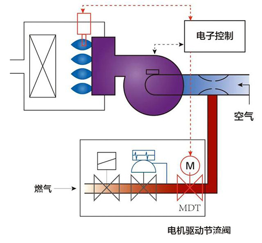 据悉,燃气自适应技术是通过离子棒实现检测火焰等离子电流型号,传输到中央控制系统,再反馈控制变频风机的转速和燃气比例阀的流量,从而使燃烧维持在恒定理想的状态。这样高效的燃气方式可使燃气充分燃烧,达到节能效果。